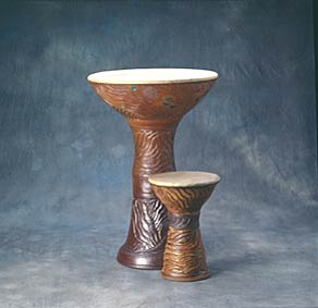 the dombek can be played several different ways. traditionally it is played while sitting down. the drum is placed in your lap with the head of the drum facing your right leg.